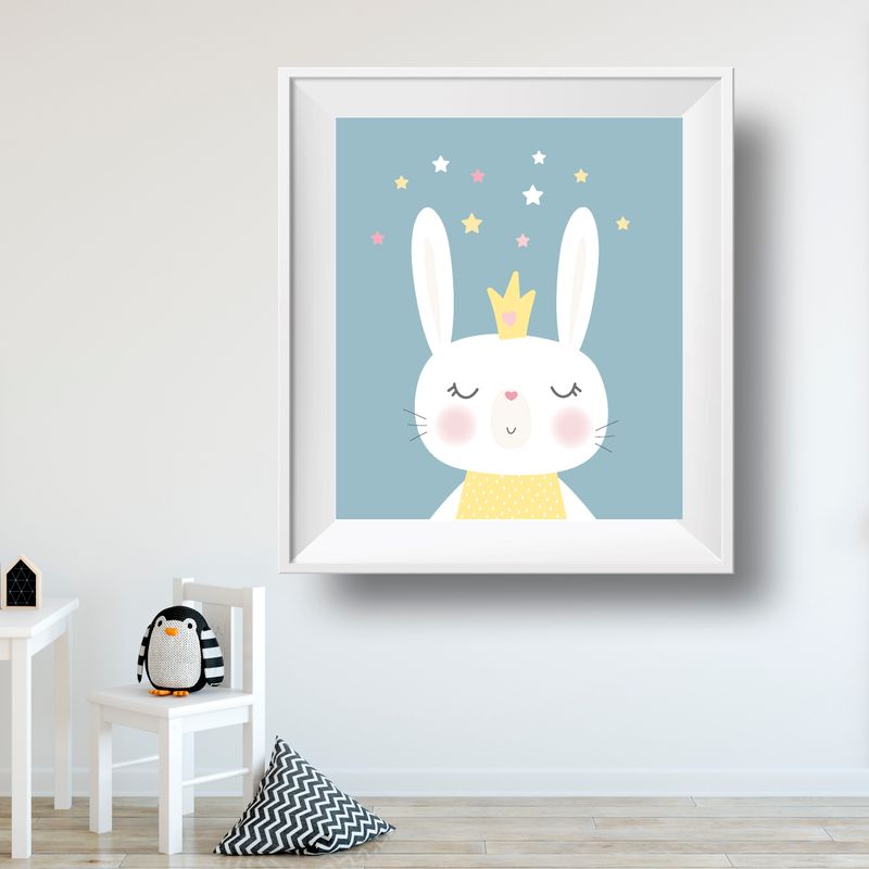 Rabbit with stars- print INSTANT DOWNLOAD-DIGITAL FILES ONLY If you do not have access to a printer, I'm happy to print and send via post, please contact me for details. Nursery printable wall art, print features a cute white rabbit wearing a crown and stars above, on a blue background, perfect for a little ones room or nursery, or given as a gift. -FILES INCLUDED- 5" x 7" JPG file format-1 print. 8" x 10" JPG file format-1 print. 11" x 14" JPG file format-1 print. *If you would like alternative sizes or the PDF file to resize, please email me and i will be happy to send for no extra cost..* If you would like alternative colours to the ones listed, please email me. No physical item will be shipped , frames are for decorative uses only. Print quality will depend on paper and printers used. If you are not entirely happy with your purchase, please message me, where i will be happy to help, my main priority is that you are satisfied and 100% happy. All artwork is copyright of Dottymoondesign © By purchasing this artwork you are not acquiring the copyright, and any form of duplication or distribution is prohibited. Used for personal use only.. Thank you...