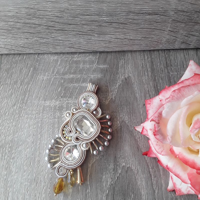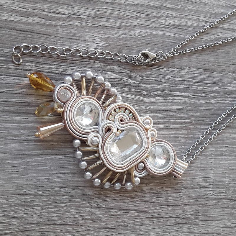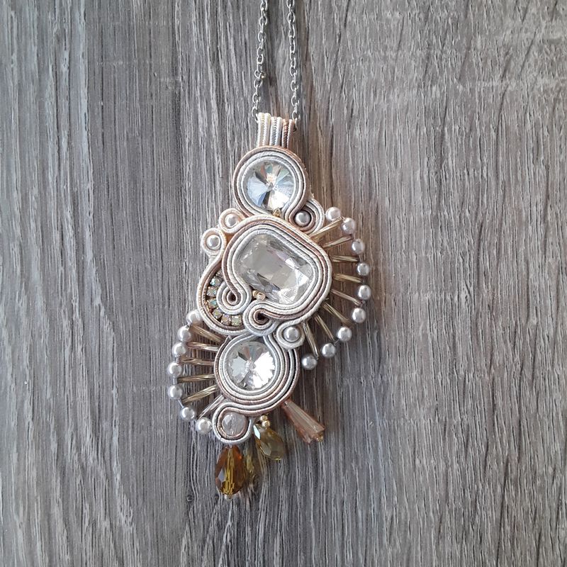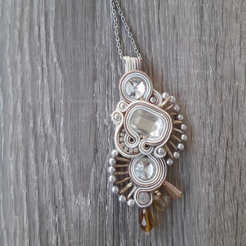White soutache pendant, bridal necklace, wedding pendant, elegant necklace, wedding accessories, craft jewelry