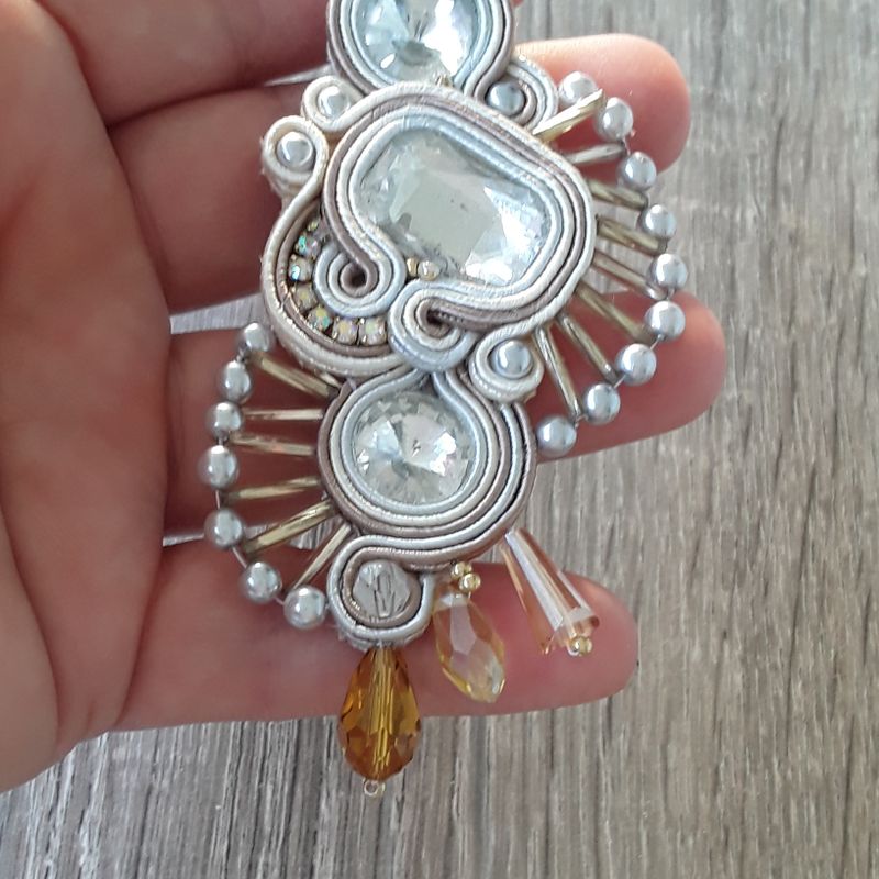 ONE PIECE not reproducible but can be customized. For information, do not hesitate to write to me. The pendant is very light so do not bother to wear it. This white soutache pendant was designed with a fairytale wedding using the following high quality materials: - crystal cabochon in different sizes - precision pearls - strass chain - soutache cord - drops of various shapes and sizes - back covered with alcantara - pendant size 4 x 1.5 in approx - necklace size including pendant length 15.7 in, adjustable - all elements are nickel-free for shipping info PM