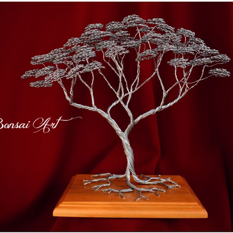 Are you looking for an original gift or home decorating? You are in the right place. A bonsai tree made of wire will perfectly decorate your home interior. Original product. Excellent for a gift or anniversary. Made of wire on a piece of wood. Available in silver or gold colour. The base is real wood. Possibility to place a dedication. https://www.facebook.com/Wire-Bonsai-Druciane-Rękodzieło-112977949379333/ Please contact before you buy.