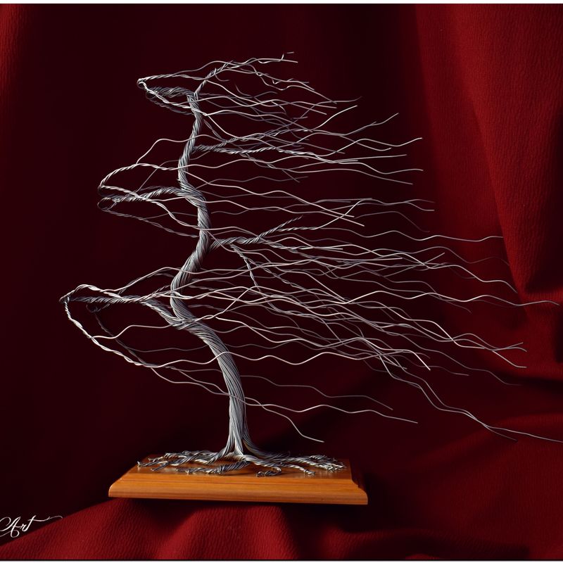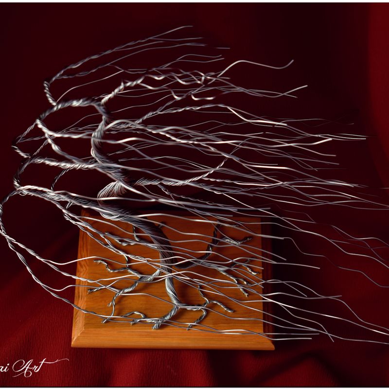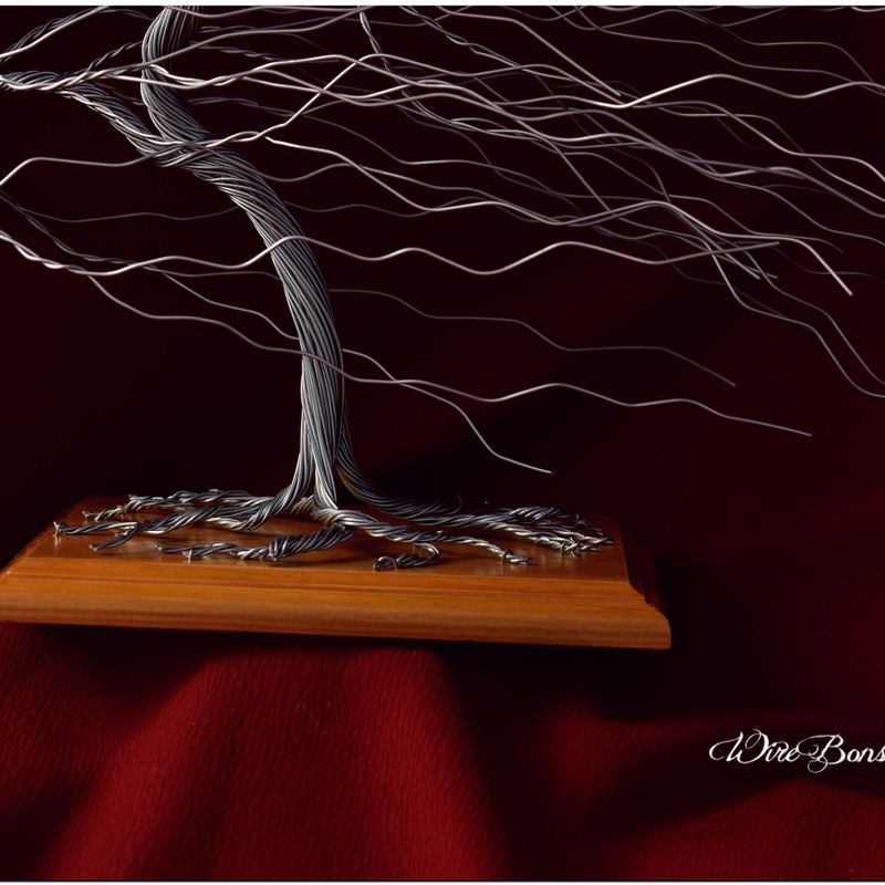 Are you looking for an original gift or home decorating? You are in the right place. A bonsai tree made of wire will perfectly decorate your home interior. Excellent for a gift or anniversary. Dimensions: 38cm height, 40cm width. You choose the color of the base. Possibility to place a dedication. Please contact before you buy.