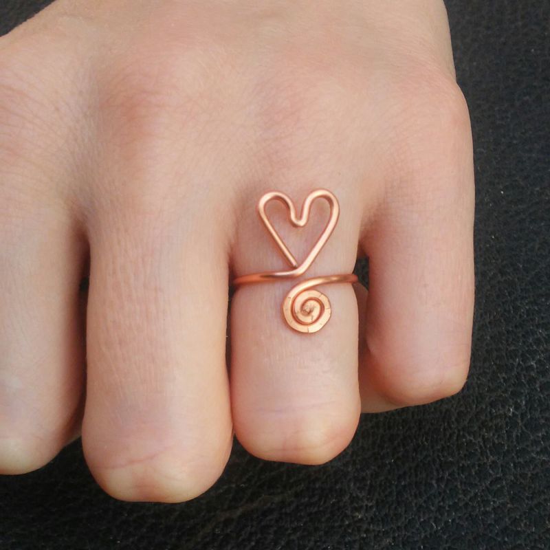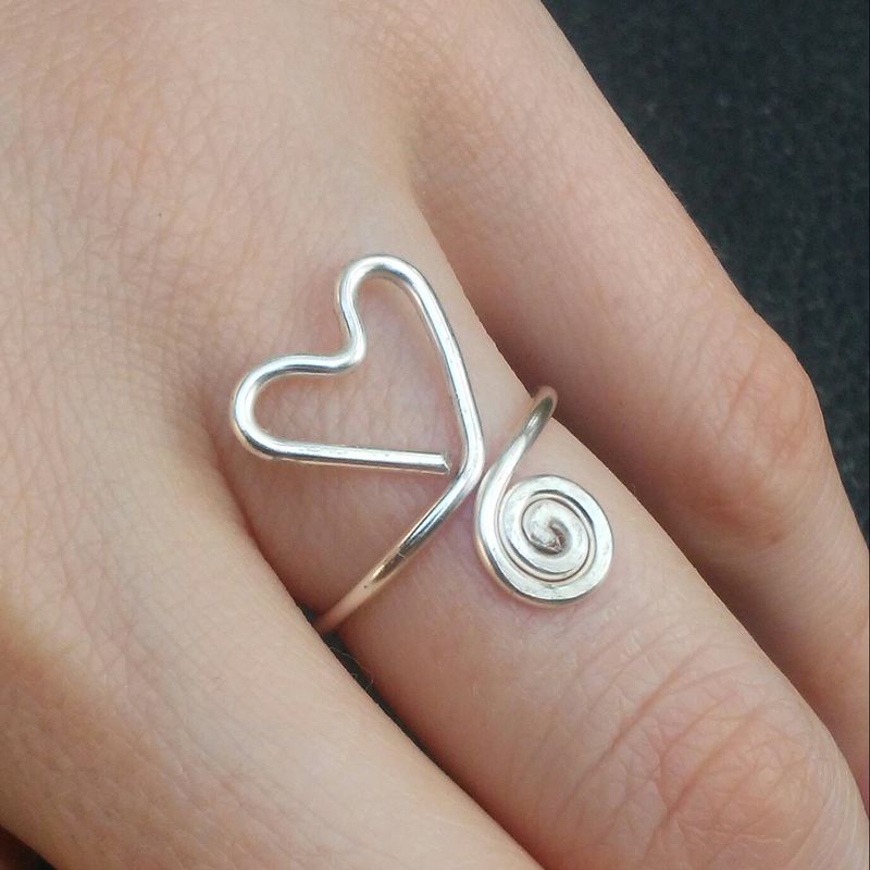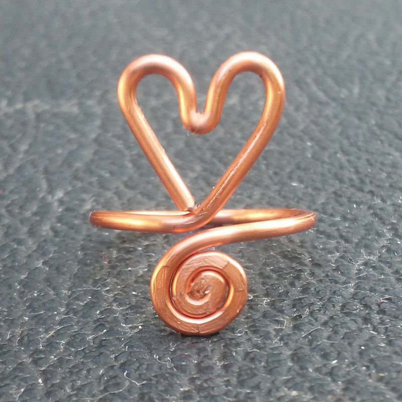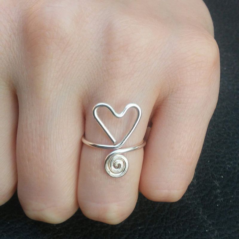 Wirewrapped Heart Swirl Ring Free US shipping