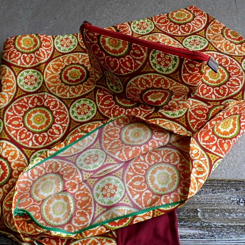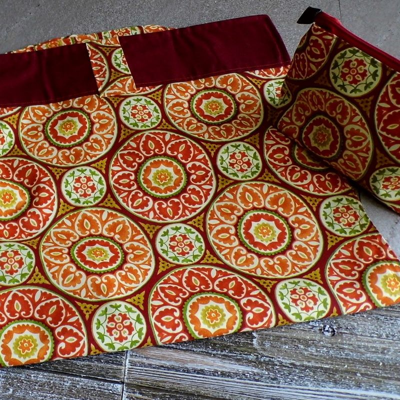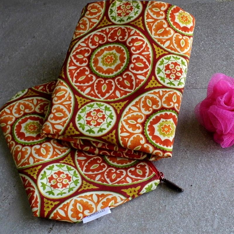 This garment bag with its matching toiletry bag is a must have for your next vacation. Made from 100% Cotton, the heavy duty plastic two-way double zipper pull opens at the side of the garment bag. The wooden circle fits over the clothing hanger for the time that you want to fold the garment bag in half. This garment bag can hold 4-5 items, depending on the thickness of the clothing. The toiletry bag is just the perfect size for your personal items or as a cosmetic bag. For those times that you aren’t traveling you can conveniently use this hanging garment bag as a closet organizer for those special outfits. This garment bag has been designed to be: stylish, functional, and it's completely original! Garment size: (H) 44 inches x (W) 22 inches Makeup bag: (H) 11 inches x (W) 7 inches