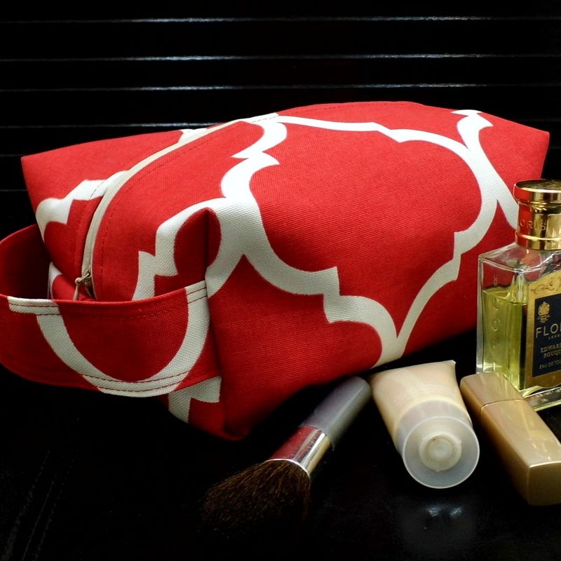 Womens Toiletry Travel Bag, Red Makeup Bag For Women, Boxy Bag For Makeup, Lattice Print Bag, Travel Organizer, Large Makeup Bag
