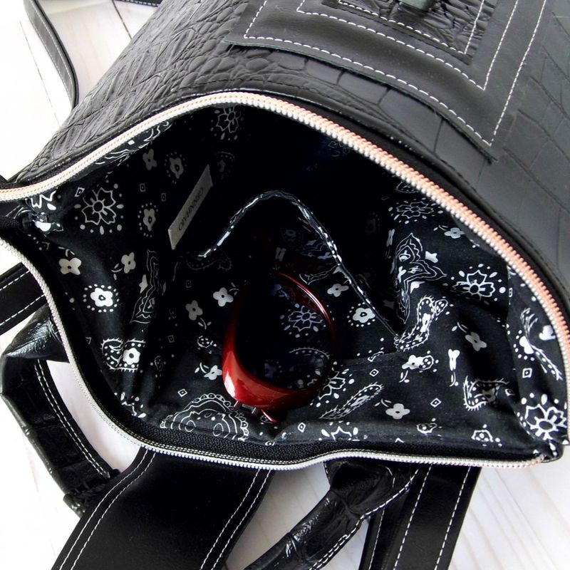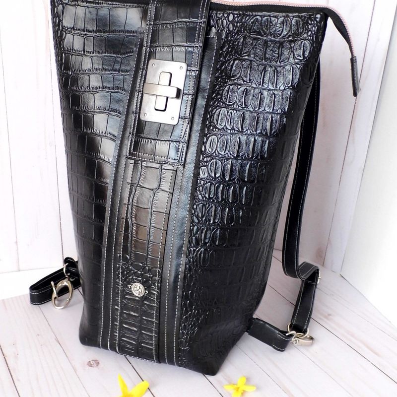 A women's vegan backpack, which is ideal for the office, school, or a day out with friends. A perfect bag for everyday. This Bespoke bag has been designed blending Black faux leather with gently upcycled materials. A perfect Eco friendly backpack, which will make a wonderful gift or a treat for yourself. Measuring 15" x 12" x 6" there’s lots of room for your daily essentials. Available from my Etsy shop https://www.etsy.com/shop/Gennhaio