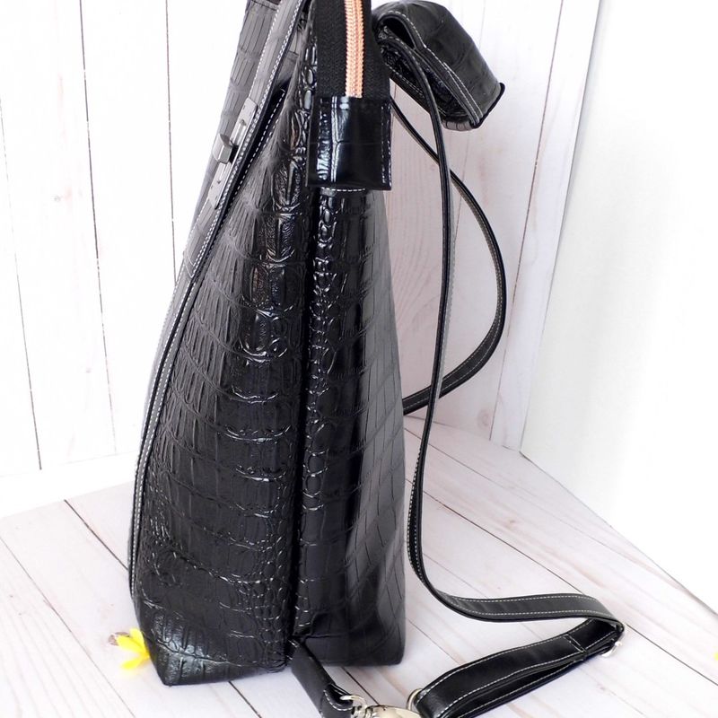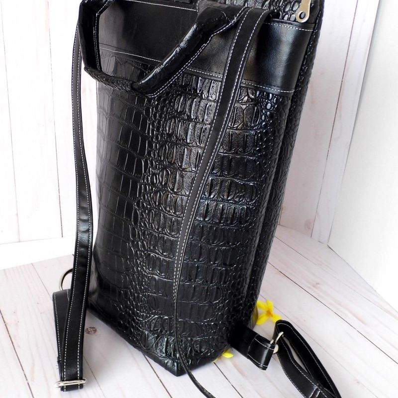 Faux Leather Backpack, Womens Black Backpack, Vegan Leather Bag, Large Shoulder Bag, Bespoke Bag, Upcycled Backpack, Eco friendly Backpack