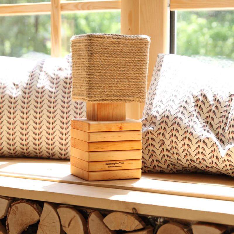 Our new item was made in an eco-style, using only natural components. Eco-style, like nature, does not recognize synthetic materials and complicated forms. This handmade “Sailors Lamp” has simple lines and romantic character. You can easily decorate your living room or bedroom. It will perfectly suit a stylized interior of private households as well as guesthouses, and restaurants. The base is made of natural pine. It is a warm, fantastic aroma material with a light color. The lampshade is made of natural jute rope. Rope provides unique cozy style, also brings warmth and elegance to your home. A directed and slightly muffled light will create an atmosphere of romance. It is completely ready for use: you just need to connect it. Please note: Each item is one of a kind, with unique grain colors, patterns, and textures: some lighter, some darker and some even a combination of both. Due to a unique appearance, your Sailor’s lamp may differ from those shown in the images. Characteristics: Bulb not included in the price. Cord: approx. 1.30m (50”) long has on/off switch Approximate size: 30 x 14 x 14 cm Plug type: EU type C plug (available US adapter on request) Works on all international voltage and electricity standards (from 100V to 240V)