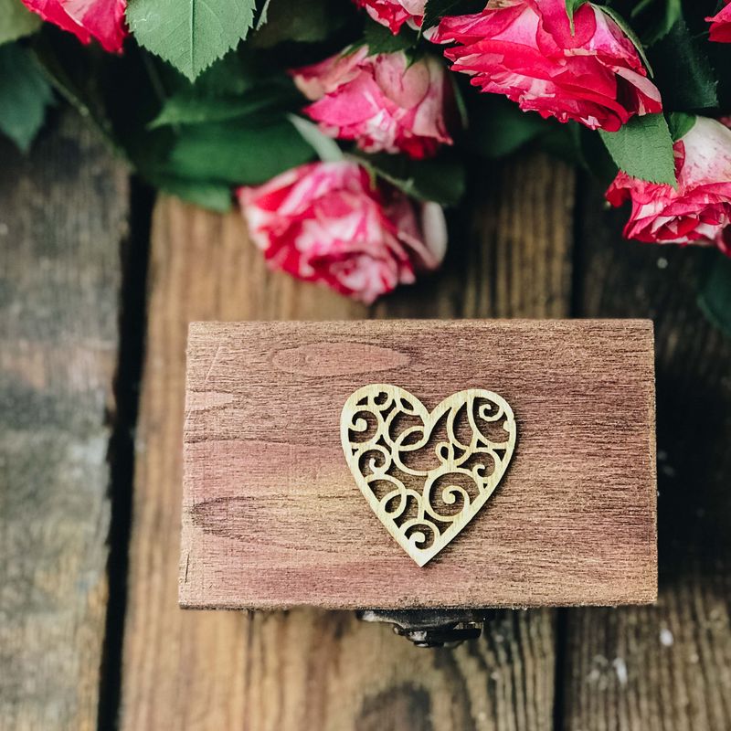 Wooden ring holder box with roses