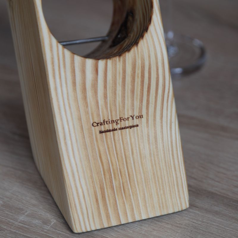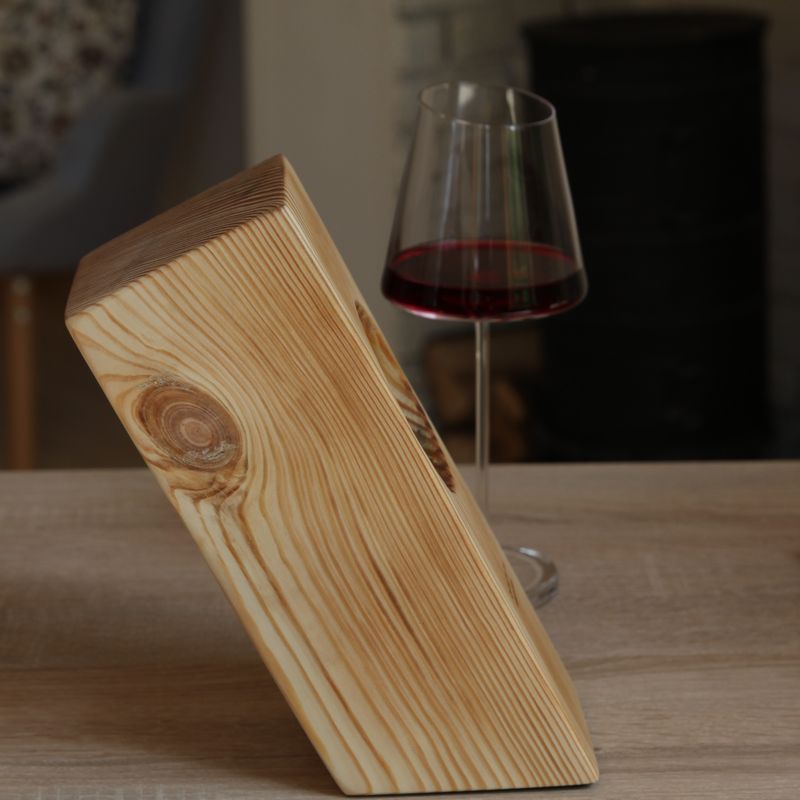 Use this simple Wooden Bottle Holder to organize the perfect date with your loved one! A new item from Crafting For You Studio has simple lines and perfectly suits your cozy kitchen interior or any other place you want to decorate. Made of solid pinewood by our artisans, full of new ideas and passion for their work. Pine is a warm, fantastic aroma material with a light color. The hole size is approximately 86 mm, it is suitable for both champagne and wine. Our Holder is durable and holds any standard size bottle's weight. Please note: Each item is one of a kind, with unique grain colors, patterns, and textures: some lighter, some darker and some even a combination of both. Due to a unique appearance, your Bottle Holder may differ from those shown in the images. Dimensions: • Size: 25 x 10 x 10 cm • Hole size: 86 mm