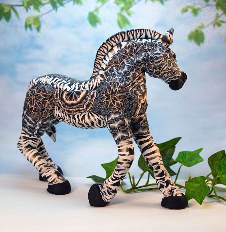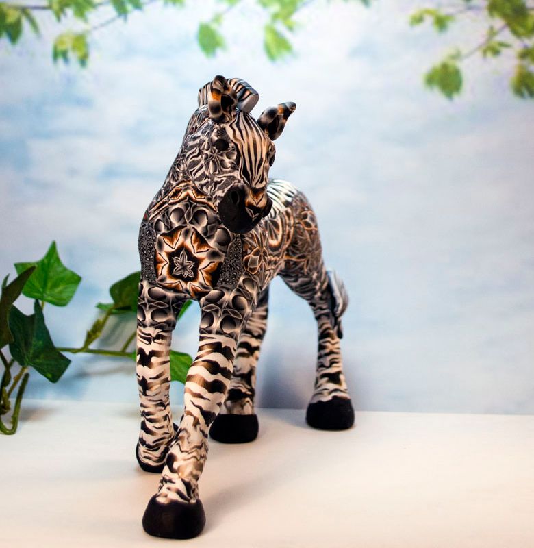 This handmade Zebra is a great gift for the Zebra lover. He stands 6"tall x 7" long and 2" wide. Crafted with polymer clay this animal sculpture is truly one-of-a-kind. All sculptures are shipped priority mail with insurance coverage.