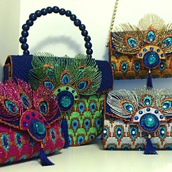 Unique and exotic Royal Blue and Green Large Peacock Handbag